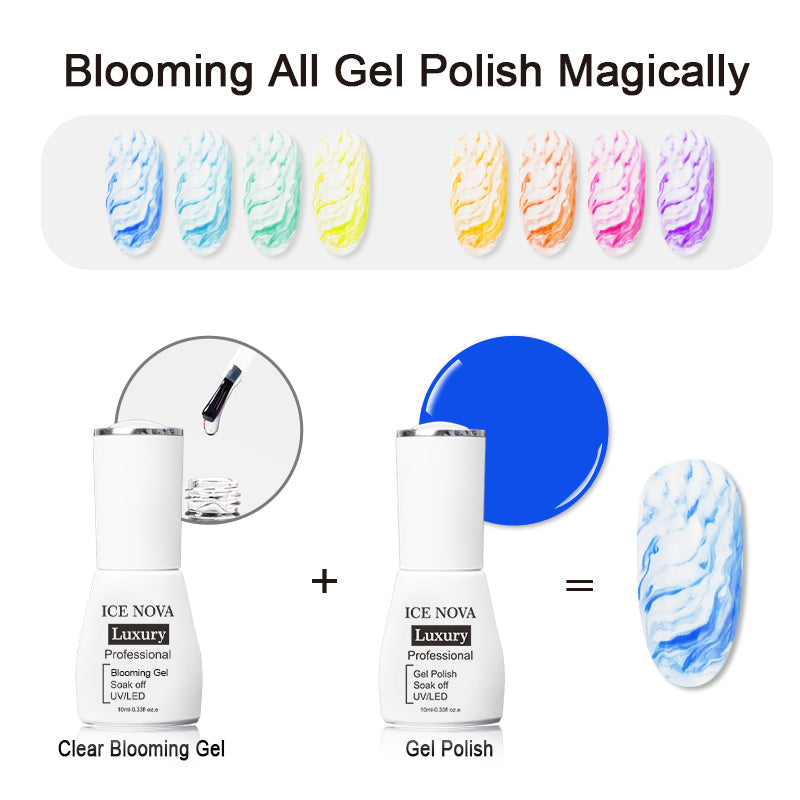 Он прозрачный и может работать со всеми видами цветных гель-лаков. Когда разные цвета сталкиваются на слое цветущего геля, ваши ногти формируют великолепный эффект бума. Специальность в узорах цветущих ногтей во многих отношениях, цветущий гель для ногтей работает со всей системой ногтей.