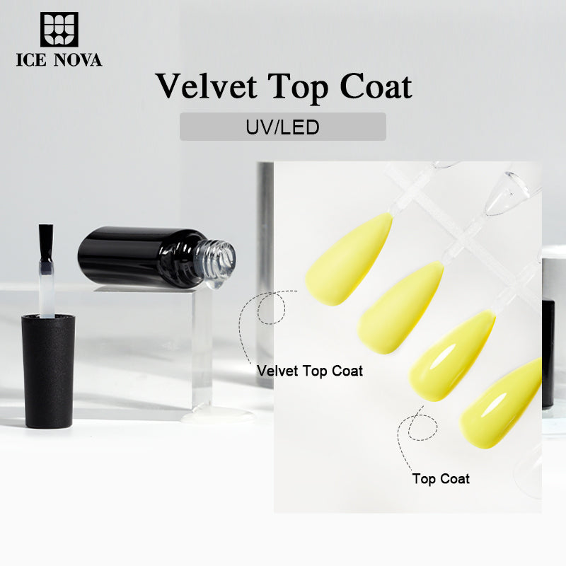 ICE NOVA Velvet Top Coat Gel No Wipe: держится более 21 дня. Требуется сушка под светодиодной лампой. Время отверждения зависит от системы освещения. Если у вас возникли проблемы с использованием этого продукта, пожалуйста, свяжитесь с нами напрямую. Мы гарантируем быструю замену или возврат денег!